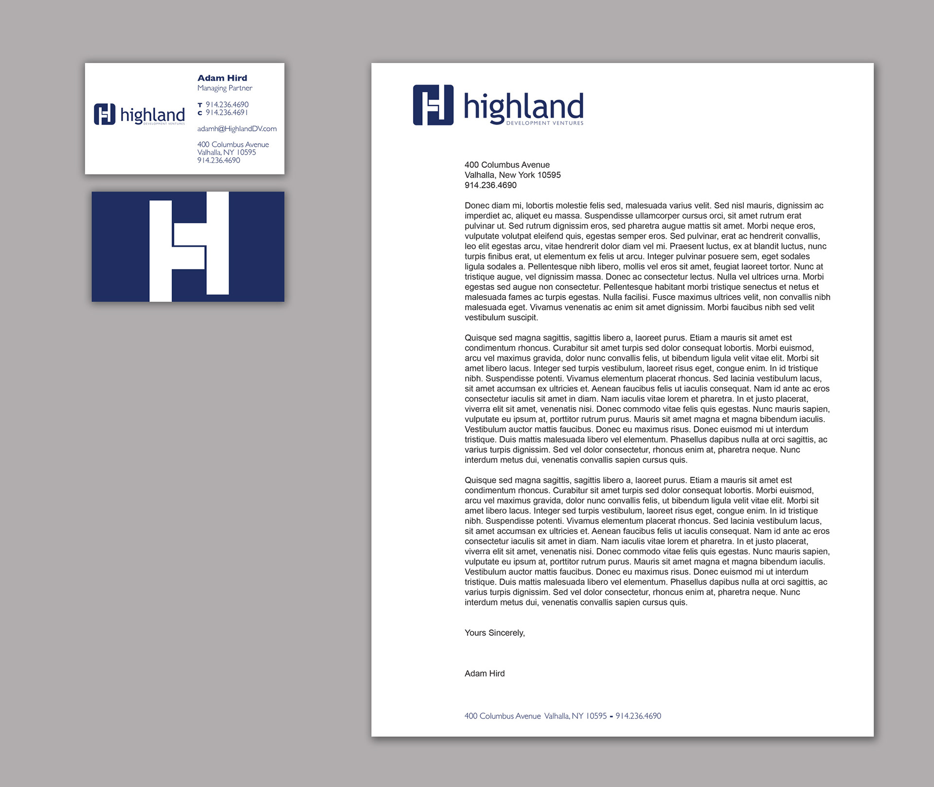 New York-based company Highland Development required a complete rebrand for a more modern logo, letterhead and business cards. — emphas!s design inc.
